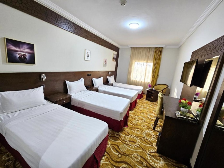 The property is 3 km from the Makkah Museum of Antiquities and Heritage, 5 km from Masjid Al Haram, and 9 km from Hira Cave. The hotel is 3 km from Makkah Haramain High Speed Railway Station, 8 km from Station Jamarat (Mina 3), and 90 km from King Abdulaziz International Airport. Facilities and services include free wifi, a 24-hour front desk, concierge service, air conditioning, an elevator, currency exchange, and parking. Rooms feature free WiFi, air conditioning, and a private bathroom. Address: Al-Tayseer District, 7661 Prince Mansour bin Abdulaziz Street MATA7661 2310, Mecca 24231, Kingdom of Saudi Arabia
