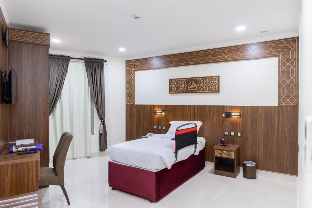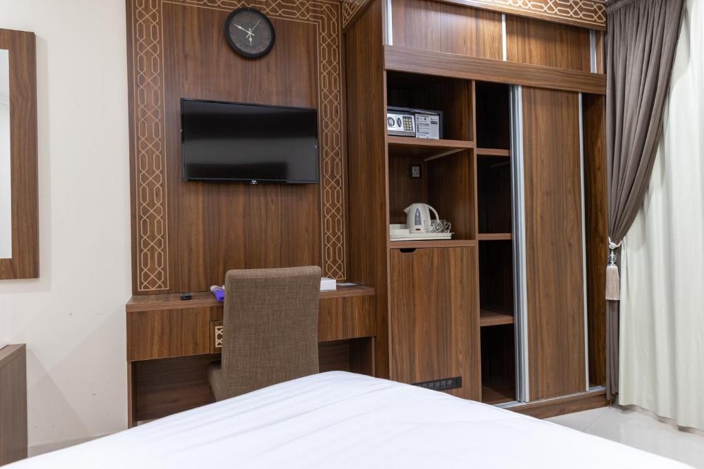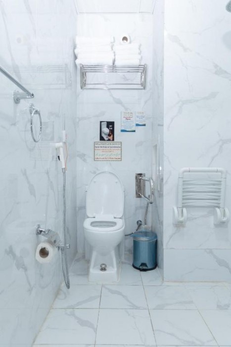 The property is 3 km from Mecca Museum, 4 km from City Centre Mall, 5 km from Zamzam Well, and 9 km from Hira Cave. The hotel is 9 km from High speed Al Harmain Train Station, 9 km from Mina Train Station -3 Jamarat, and 88 km from King Abdulaziz International Airport. Facilities and services include free WiFi, 24-hour front desk, and air conditioning. Rooms feature air conditioning and a private bathroom with shower. Address: Al Hujoon Street, 24231 Makkah, Saudi Arabia